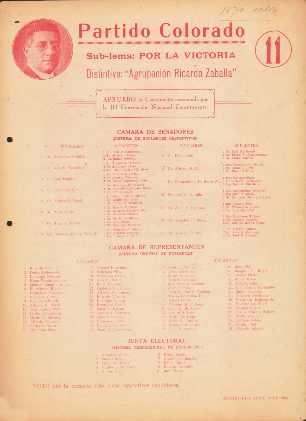 | Título : | Partido Colorado. Lista 11 (1934) |
