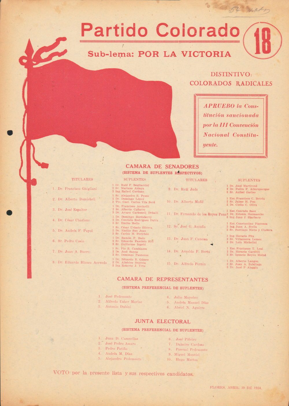 | Título : | Partido Colorado. Lista 18 (1934) |
